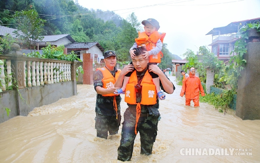 2018年7月11日,四川绵阳,驻川武警某部交通第二支队官兵在解救和转移当地被困群众。