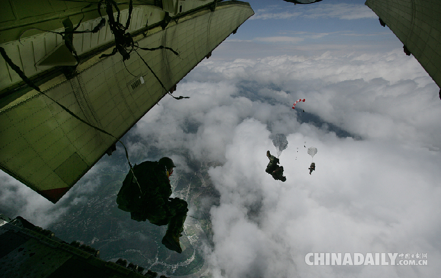 2008年5月14日,空军满载空降兵特种大队的大型运输机从成都某军用机场起飞,“空降兵十五勇士”生死营救,打开救援通道。
