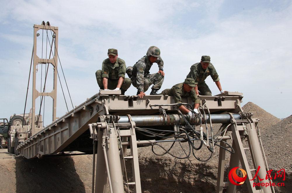 “操作盒的操作使用,是工兵分队桥梁架设课目的核心环节……”在“安全路线”工兵分队比赛项目模拟训练场,来自南部战区陆军某合成旅的工兵连连长赵伟,正在向乌兹别克斯坦参赛队员演示桥梁架设课目的操作技巧。他告诉笔者,“安全路线”比赛项目,各参赛国用的都是中方装备,项目组要求他们务必在最短时间内,让外军代表队适应我军装备。