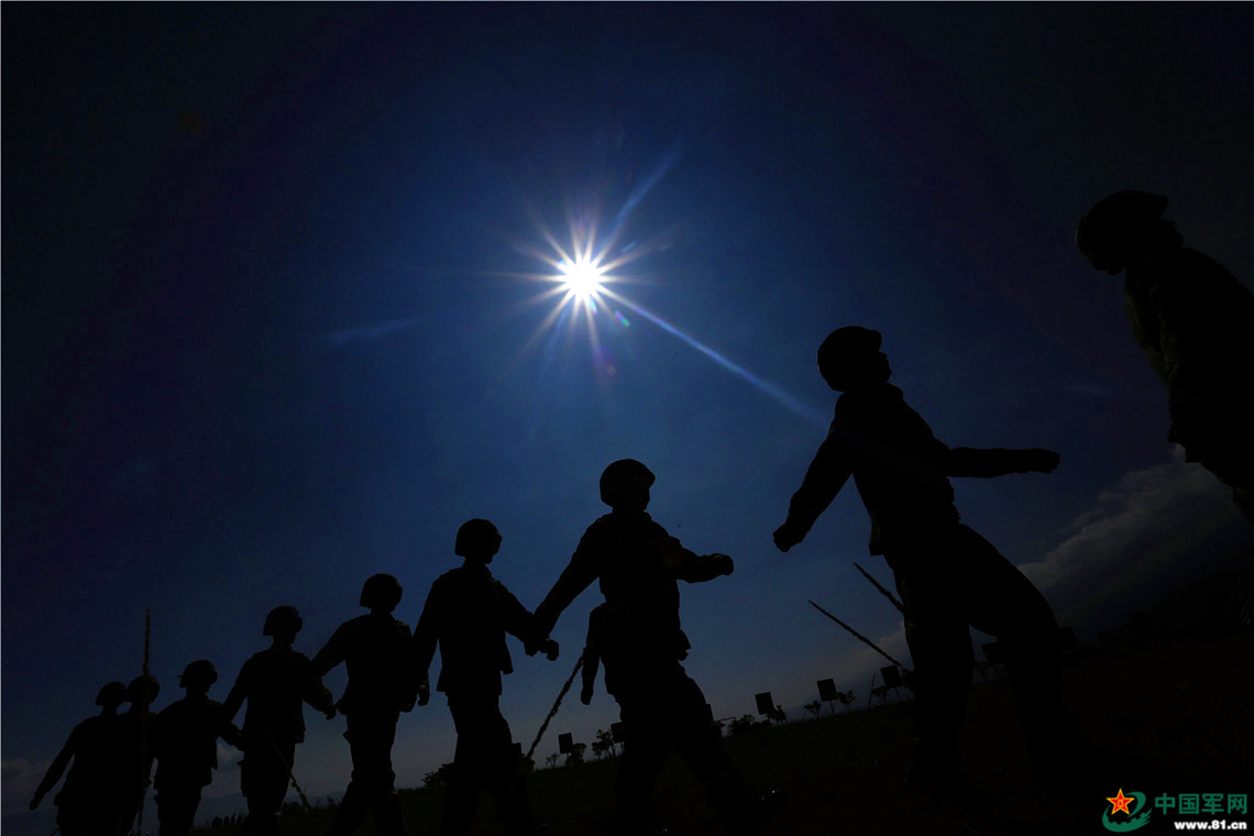 心和太阳一同在燃烧,思绪和旗帜一同在飞扬。阳光照耀下,身着“铠甲”的武警官兵有序的行进在练兵场上。 马亮志 摄