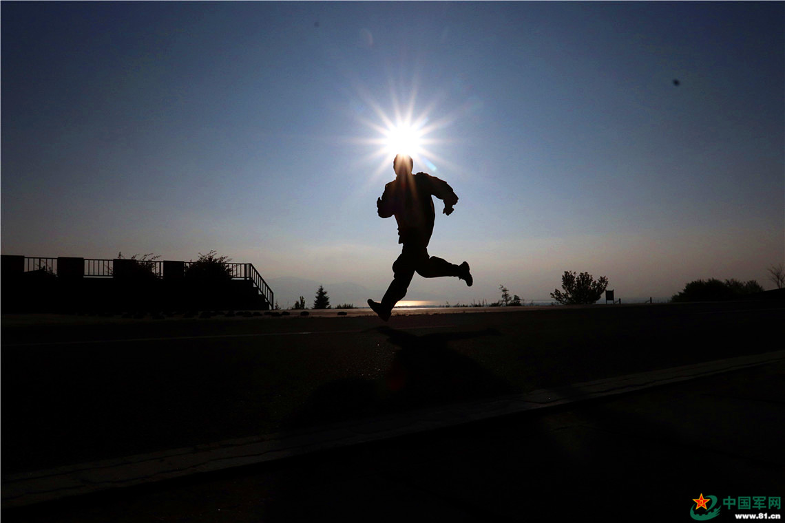 正午时分,武警官兵在进行体能训练。健硕的身体,豪放的奔袭,展示着军营男子汉的力与美。 马亮志 摄