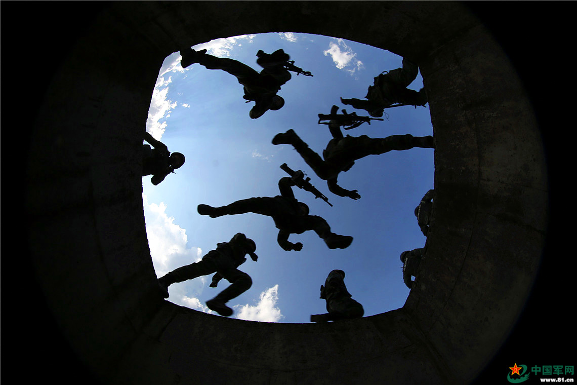 军旅青春,异样精彩,武警官兵苦练军事技能、跨越深坑的英姿,如同奔向战场豪迈。 马亮志 摄