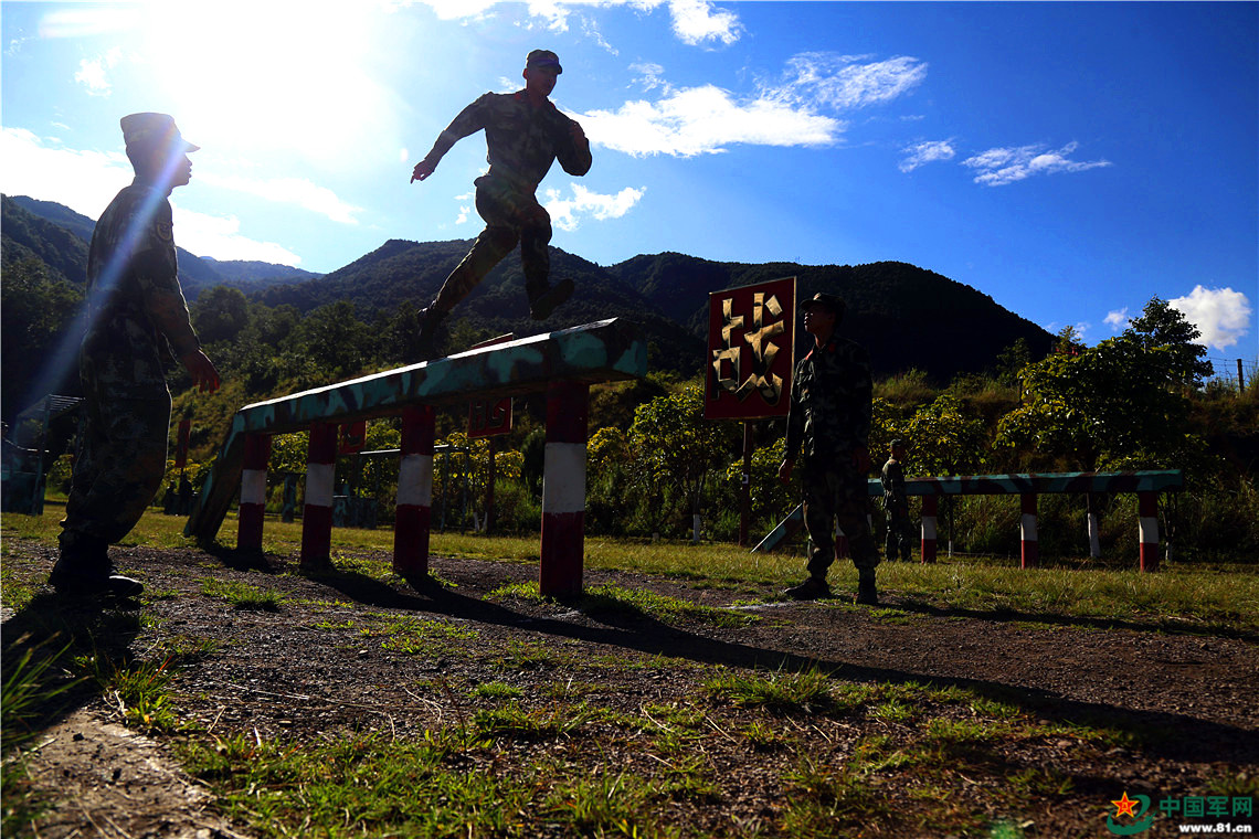障碍场上练兵忙。武警官兵大步跨越障碍的身姿,如同官兵对军旅人生的追求,那就是不断的拼搏、跨越。 马亮志 摄