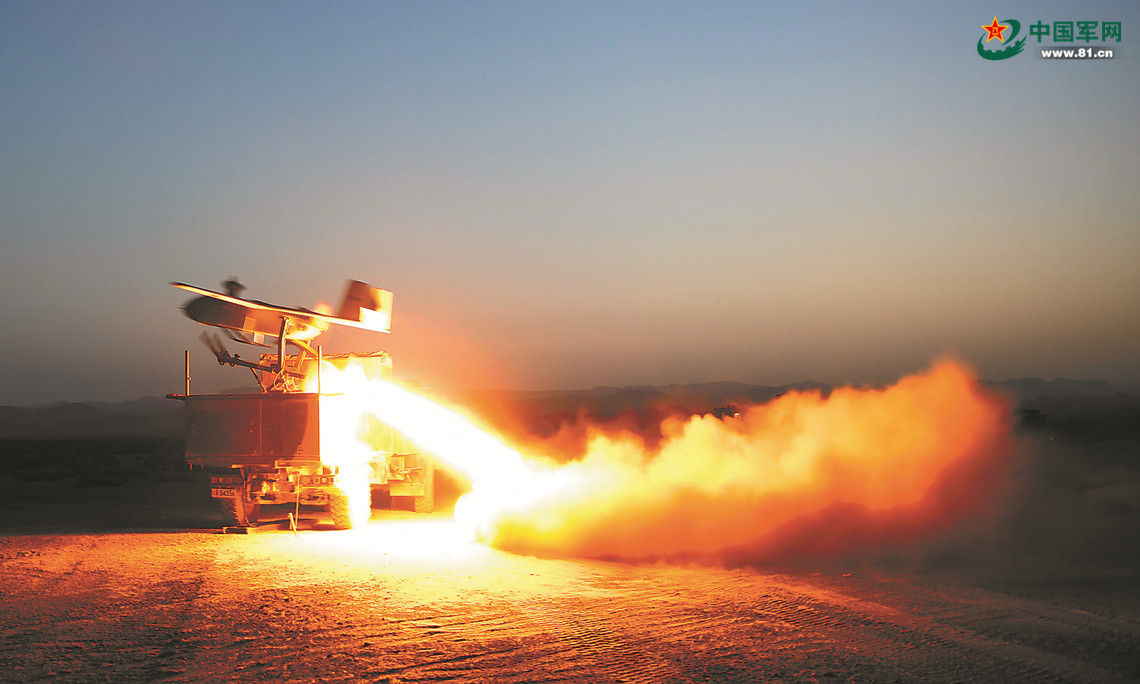 大漠扬威丨数十枚火箭弹在戈壁上空划过
