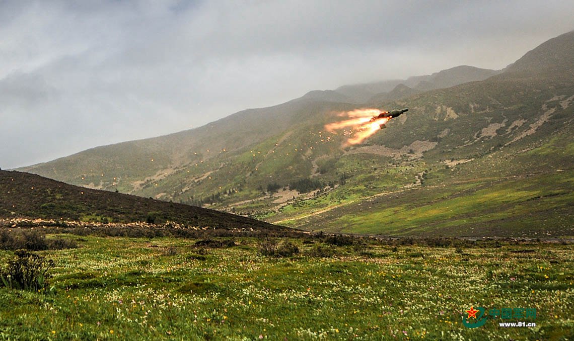 大漠扬威丨数十枚火箭弹在戈壁上空划过
