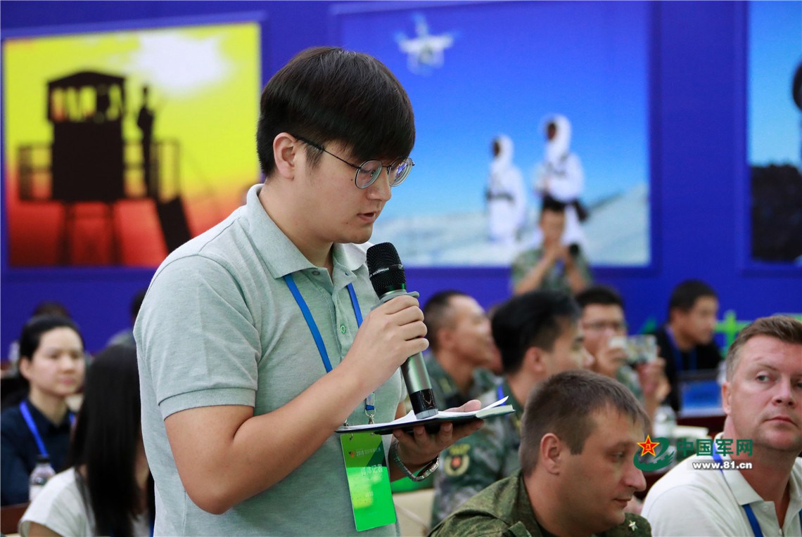7月27日,中国陆军在新疆库尔勒召开承办“国际军事比赛-2018”赛前新闻发布。这是记者提问。袁凯 摄