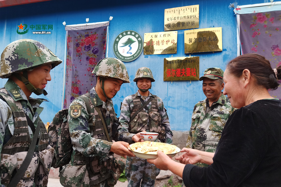 去年,边防官兵巡逻经过他们的夏季牧场,布仁达拉连夜为官兵打了40多个馕。在夫妻俩的带动下,越来越多的牧民加入爱边拥军的行列。