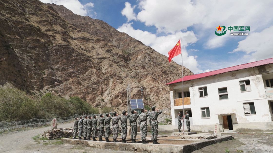 到达前哨,新战士在老营房前升起五星红旗,坚定矢志戍边的志向。严晓春摄