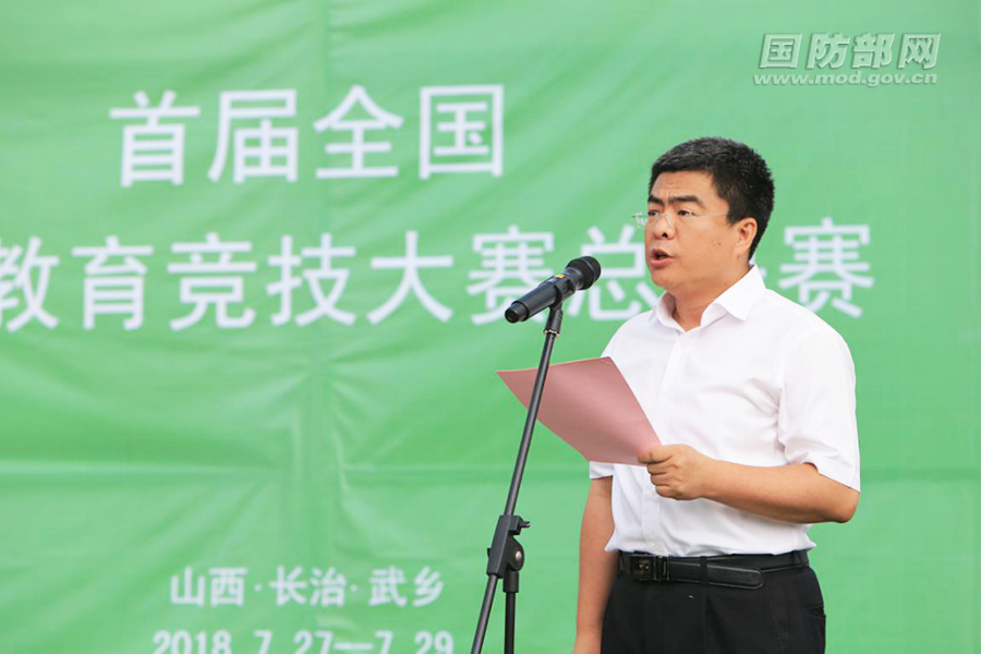 武乡县委书记、人武部党委第一书记胡坚主持开幕式,他在致辞中表示,首届全国国防教育竞技大赛总决赛在武乡隆重举行,这是贯彻落实习近平总书记关于加强全民国防教育的重要指示要求,依据国家国防教育办公室《二〇一八年全民国防教育工作安排》举办的重要赛事,是增强适龄青年参与军事实践活动兴趣、激发爱军尚武精神的重要举措,是“传承红色基因、汇聚强军力量”主题教育活动的重要内容,充分体现了对武乡老区的关心、支持和厚爱。
