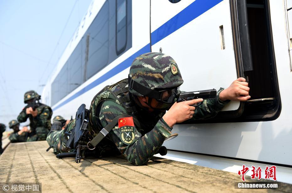 武警进行动车反劫持实战演练 推升应急战斗力