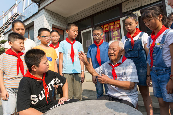今年88岁的陈强是一名退伍军人,也是一名校外教育辅导站兼职辅导员。他把关心下一代,教育培养下一代的爱国情怀作为自己应尽的义务。“1938年7月18日,日本鬼子一大早下乡烧杀掠夺,一路杀了108人,最小的只有4岁……”陈强用他充满深情的声音向孩子们讲述了抗日战争期间,发生在如皋大地上的真人真事。陈老用他的抗战故事教导孩子们努力学习,奋发图强,为中华民族的伟大复兴而努力奋斗。