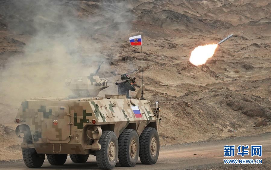 7月31日,参赛防空兵使用导弹打击模拟直升机靶标。 当日,中国陆军承办“国际军事比赛-2018”的“晴空”防空兵技能赛,在新疆库尔勒的戈壁滩中进行。来自中国、俄罗斯、白俄罗斯、埃及、巴基斯坦、乌兹别克斯坦、委内瑞拉7国军队的防空兵在这里展开激烈角逐。 新华社记者 李刚 摄