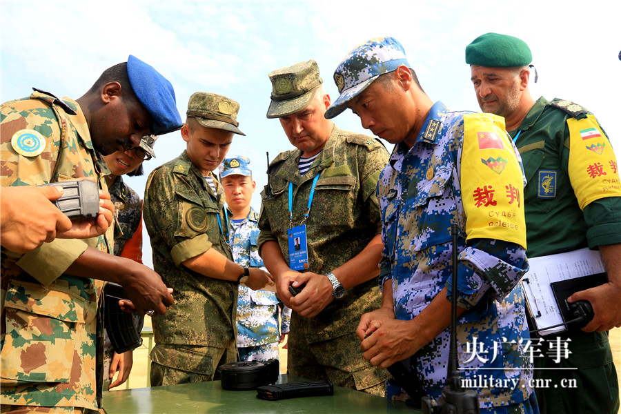 求生赛前,各国裁判检查装备弹药。尚文斌 摄
