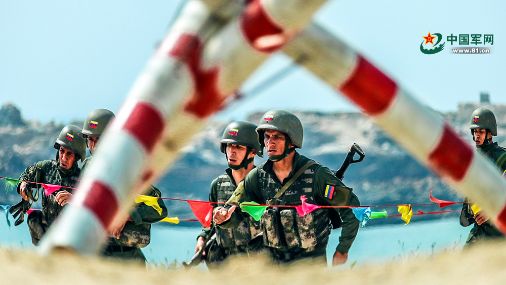 委内瑞拉参赛队员通过拒马。孙宏韬 摄