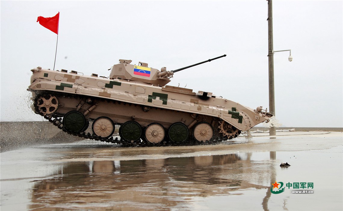 外军参赛队员驾驶战车通过涉水场。袁凯 摄