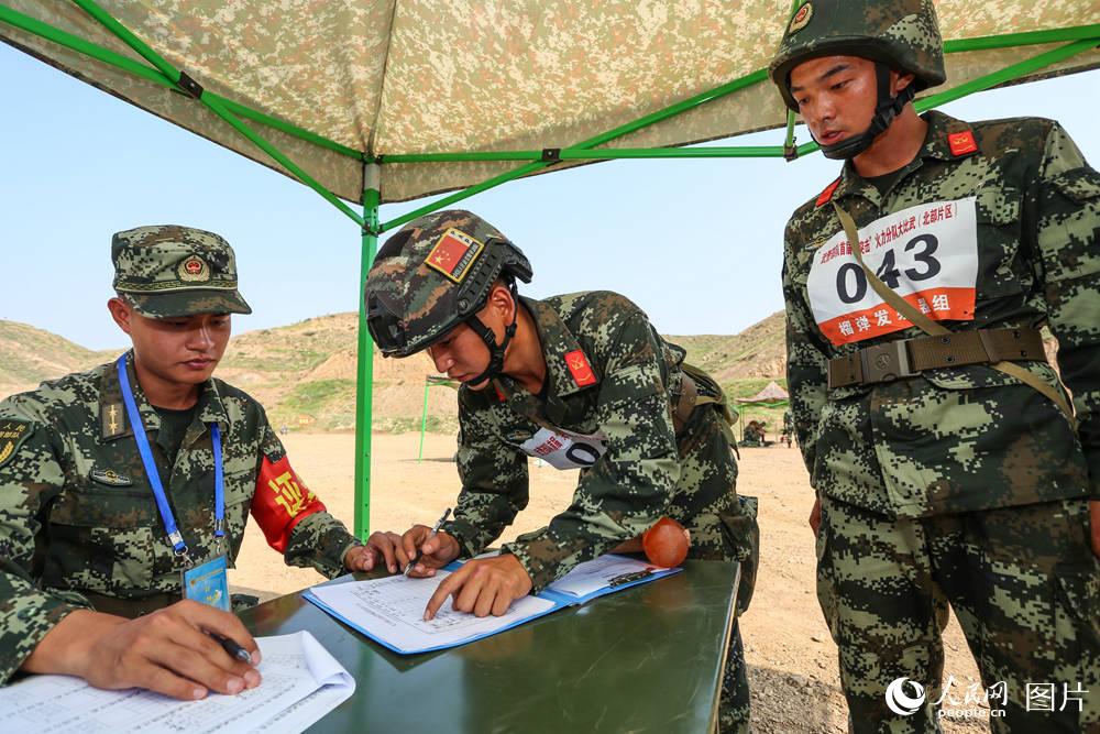 射击完毕后,参赛队员签字确认成绩。安晓惠摄