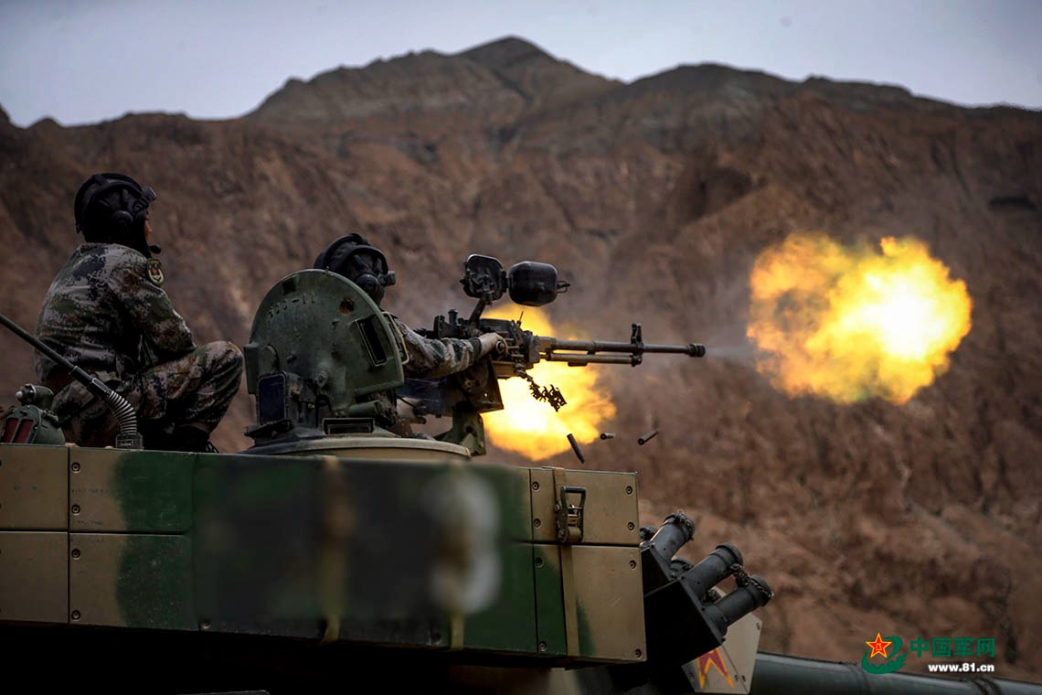 利用高射机枪对“敌”实施火力打击。李忠元 摄