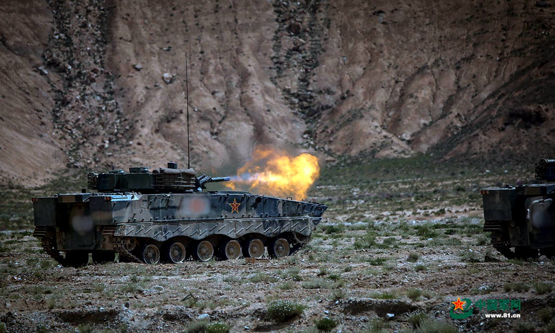 利用步战车对“敌”实施火力压制。李忠元 摄