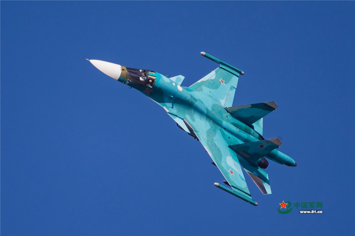 俄空天军苏-34战机进行单机特技飞行。杨盼 摄