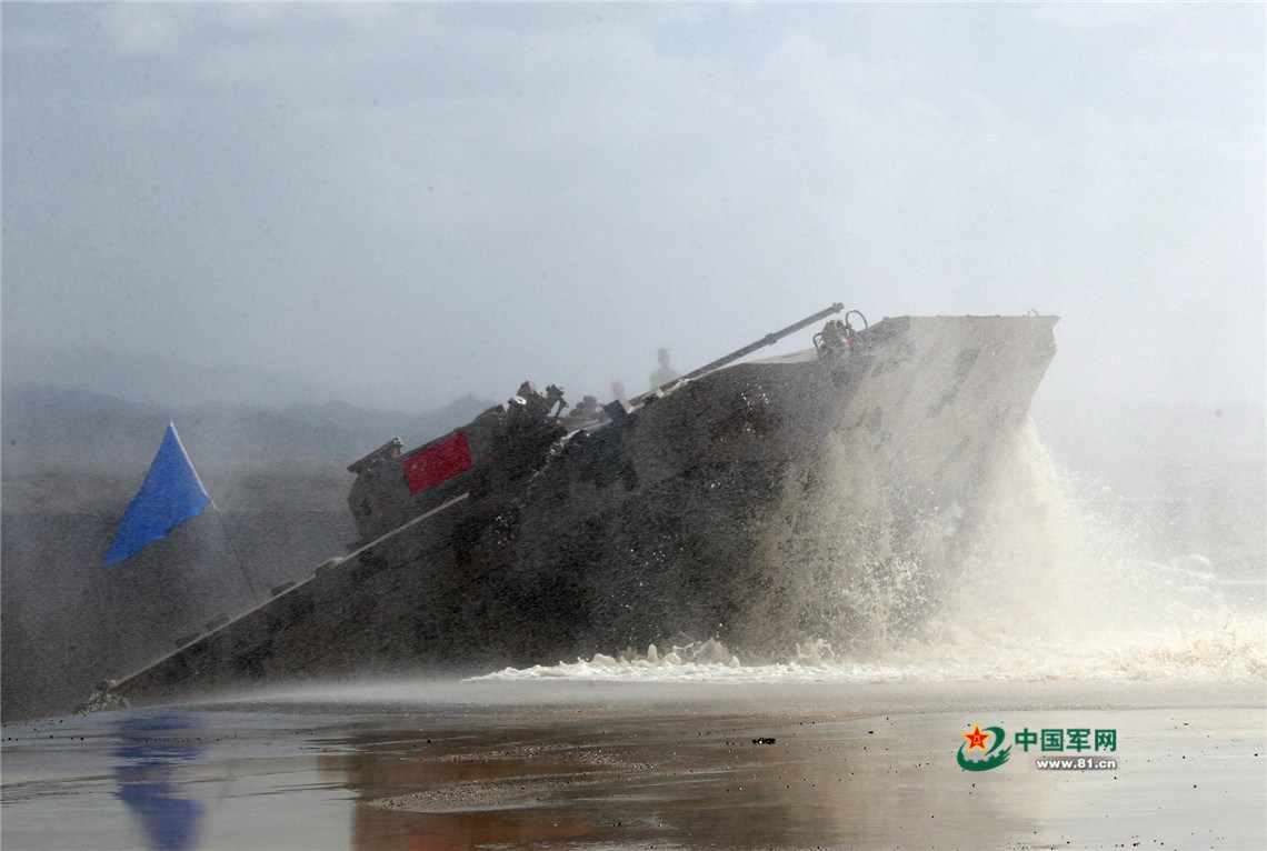 中方参赛车辆快速通过涉水场。袁凯 摄
