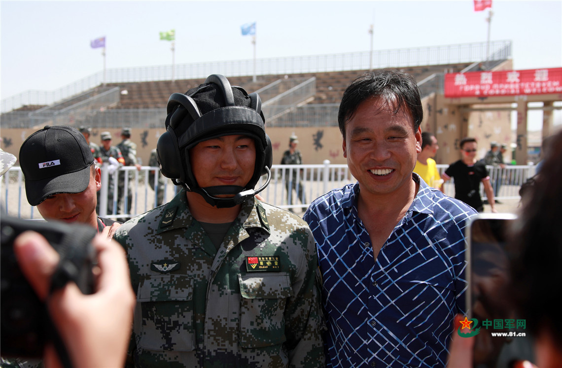 比赛结束后,观众与中方参赛官兵合影。袁凯 摄