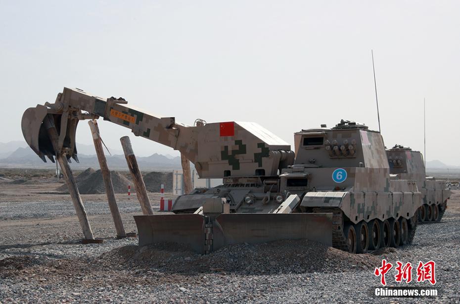 8月7日,“国际军事比赛-2018”新疆库尔勒赛区继续进行“安全路线”工兵分队单项赛。中国、俄罗斯、乌兹别克斯坦3国参赛,每支参赛队30人。据悉,“安全路线”工兵分队比赛是中国陆军首次承办,当天各国工兵需完成道路抢修、清障任务。图为中方参赛官兵驾驶多用途工程车展开清障作业。 袁凯 摄