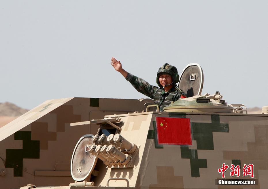 比赛完毕,中方参赛官兵向观众致敬。 袁凯 摄
