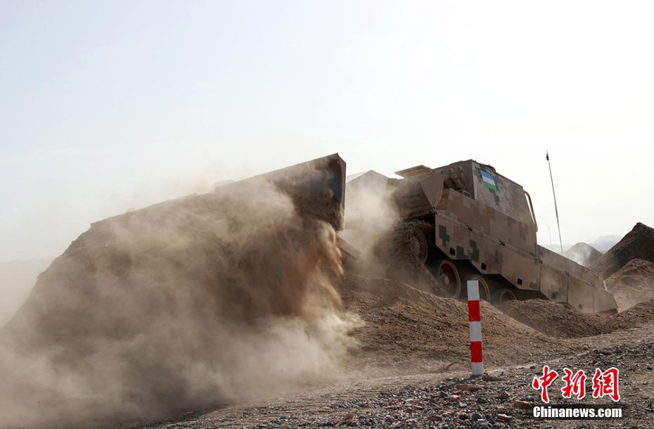 外军参赛队员驾驶多用途工程车展开作业。 袁凯 摄