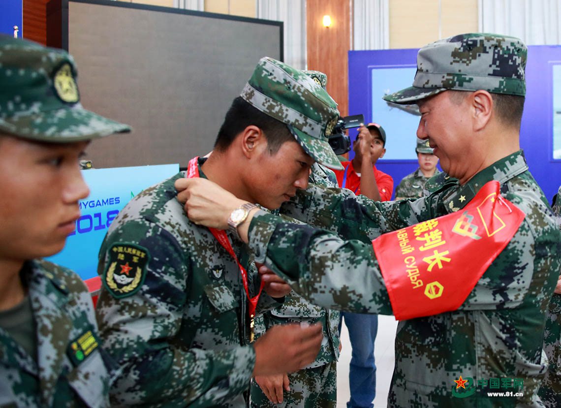“苏沃洛夫”项目裁判长徐友泽少将为中方参赛官兵颁奖。袁凯 摄