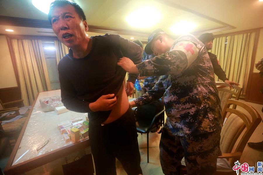 海军徐州舰军医为船员检查身体。张千 摄