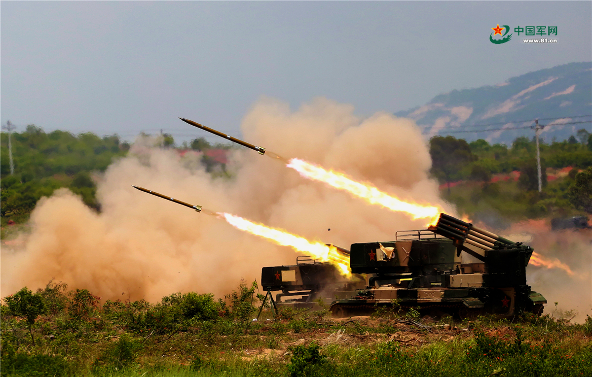 “XX方位,发现‘敌’装甲集群,坐标XX……”,随即,某型火箭炮分队对“敌”进行火力覆盖,榴弹炮分队集中火力对目标进行重叠射击,炮声响起,目标区顿时水浪滔天,“敌”装甲目标悉数被摧毁。“我们着眼未来战场,采取多弹种交替发射,拦打结合、线阻面毁,确保火力打击精确有效。”营长邹家奇说道。