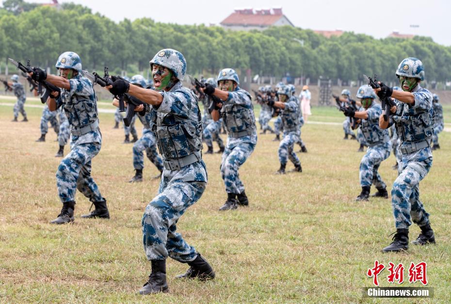 武汉市是全国最早开展军营开放活动的城市之一,2012年以来已连续举办5届20余场军营开放活动,参与群众多达数十万人。图为驻汉空降兵某部战士们刺杀操表演。 中新社记者 张畅 摄
