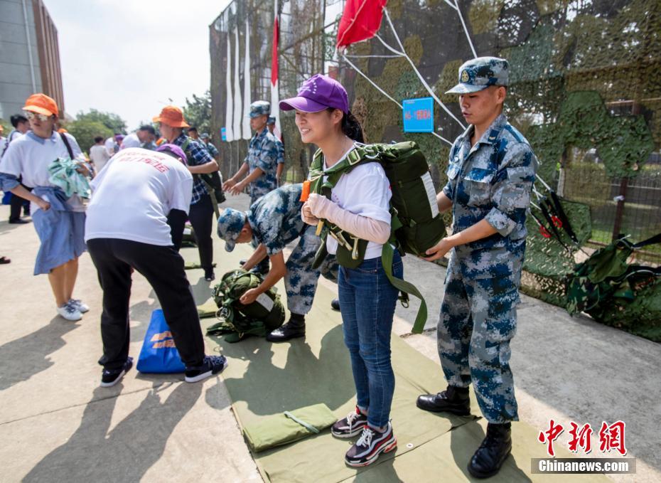 静态装备展示上市民体验背负伞具。 中新社记者 张畅 摄