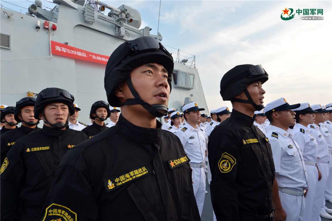护航官兵齐唱《人民海军向前进》。张海龙 摄