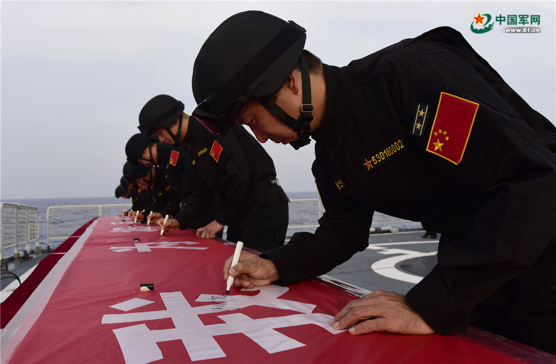 海军第三十批护航编队举行宣誓签名仪式