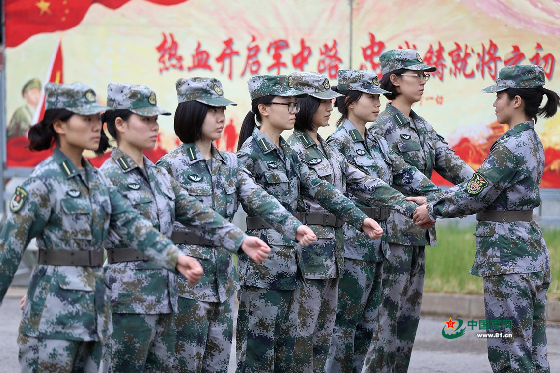 来自不同单位的新毕业女学员正在教练班长带领下进行队列训练。