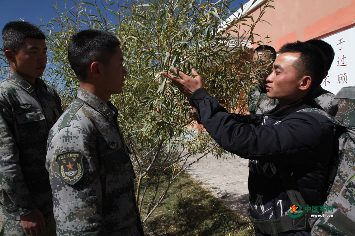 退伍老兵给留队官兵讲述种树的经验。刘慎 摄