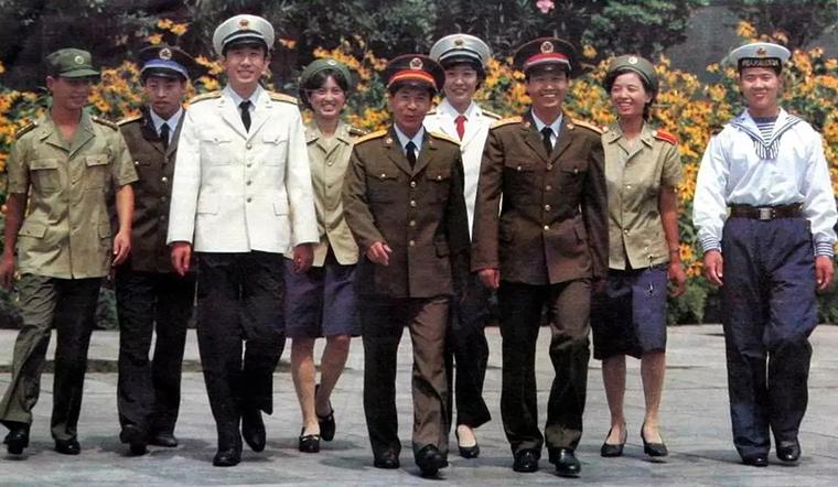 穿87式陆海空军夏常服的三军官兵。