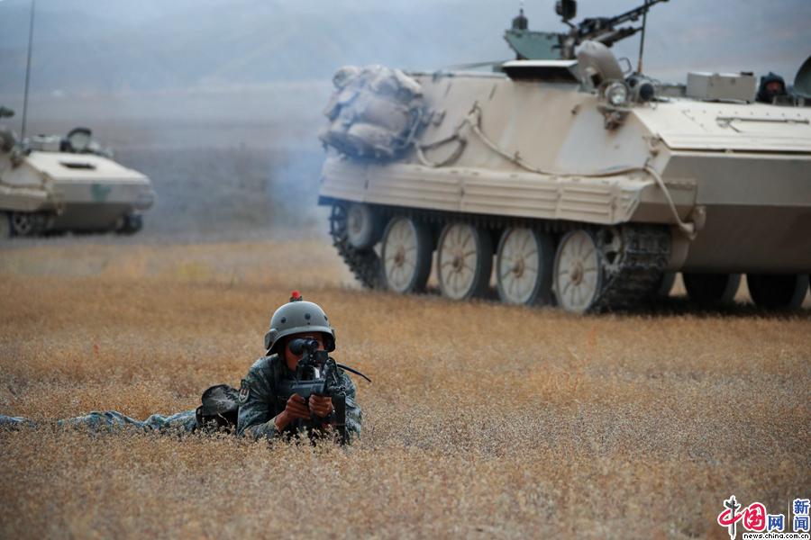新疆军区某装甲团展开合成营实兵对抗演练