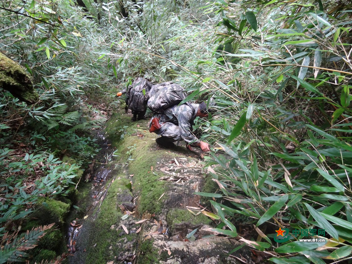 官兵们只能淌过泥流
