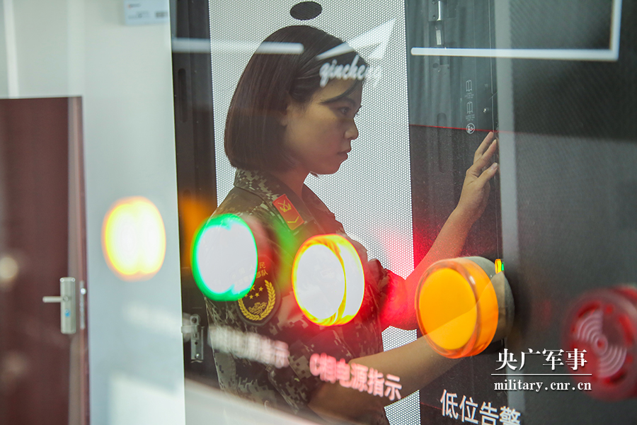 虽然就要告别军营,女兵班长郑苏像往常一样认真细致地检查机房设备。 蓝惟东摄