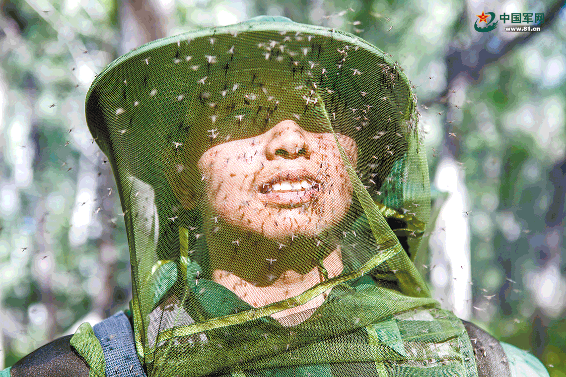 北湾边防连驻地沼泽密布,素有“蚊虫王国”之称,每年6-8月是蚊虫肆虐期。这里的蚊虫毒性大,人体被叮咬后轻则红肿发痒,重则溃烂流脓。