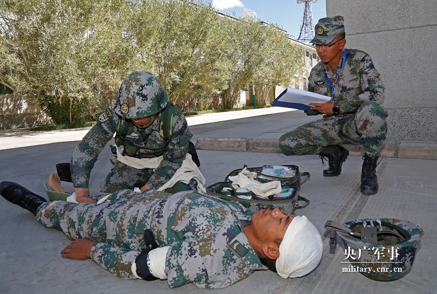 8月25日,参赛队员在岗位练兵比武竞赛中进行战伤自救互救课目比赛。 刘晓东摄