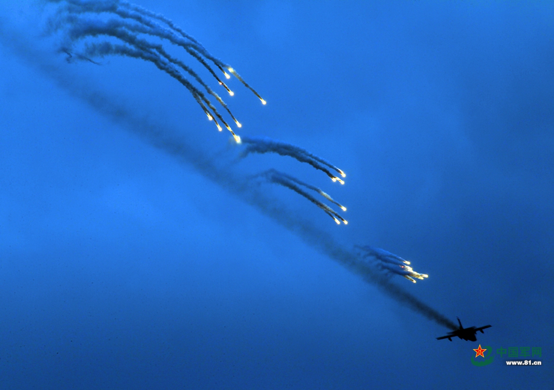 中方歼击机施放电磁干扰弹。 罗顺裕 摄
