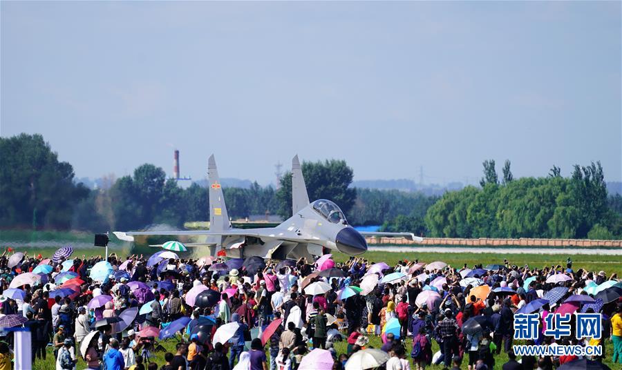 8月30日,人们观看空军新型战机飞行表演。 新华社记者 王东明 摄