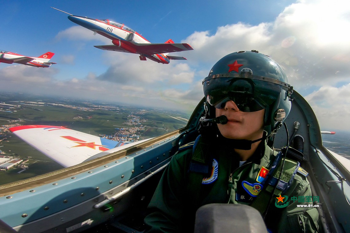 8月30日,空军航空开放活动,红鹰飞行表演队飞行员空中特技表演。杨盼 摄
