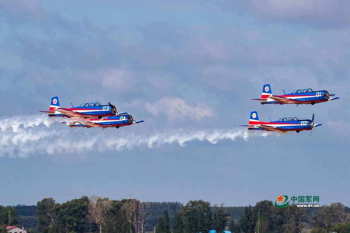 8月30日,空军航空开放活动,天之翼飞行表演队超低空通场。杨盼摄