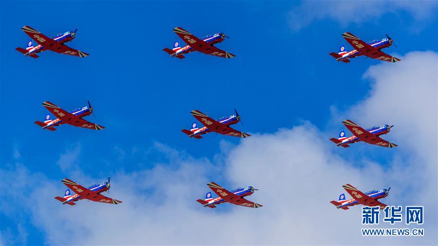 9月1日,参加空军航空开放活动的“天之翼”飞行表演队,向社会公众作飞行表演。 新华社发(廖强 摄)