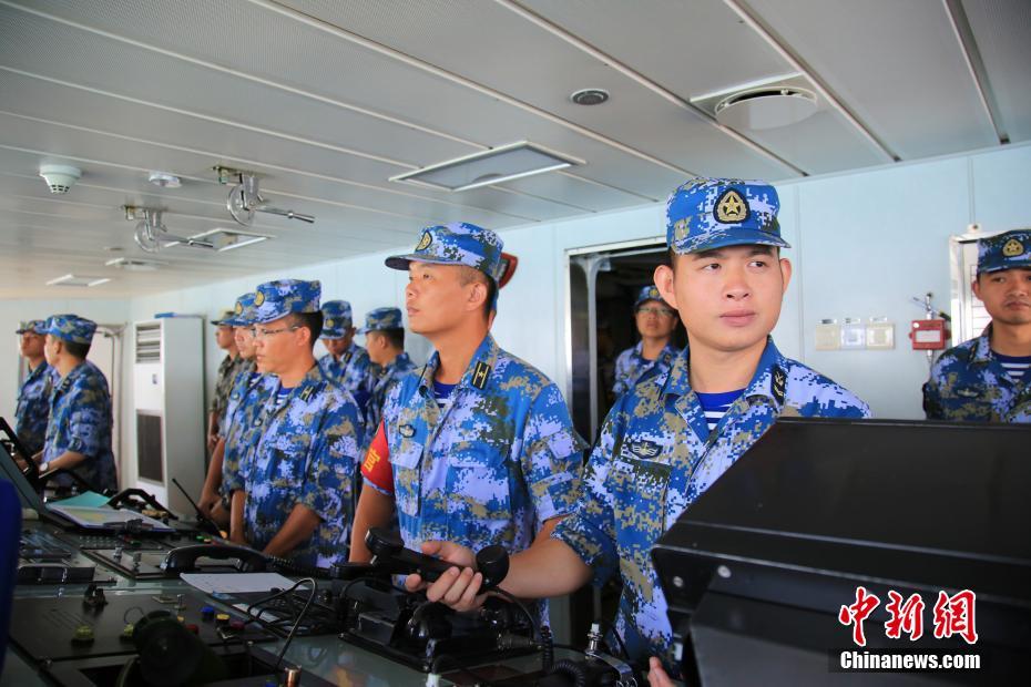 图为黄山舰各部位精心操作、密切协同。中新社记者 徐广 摄