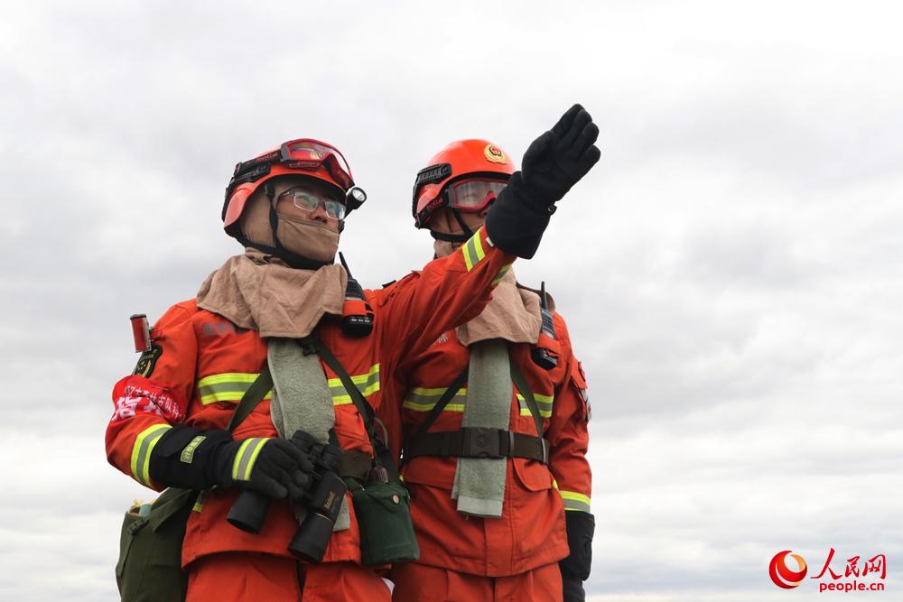 指挥员现地勘察火场、了结火场态势。